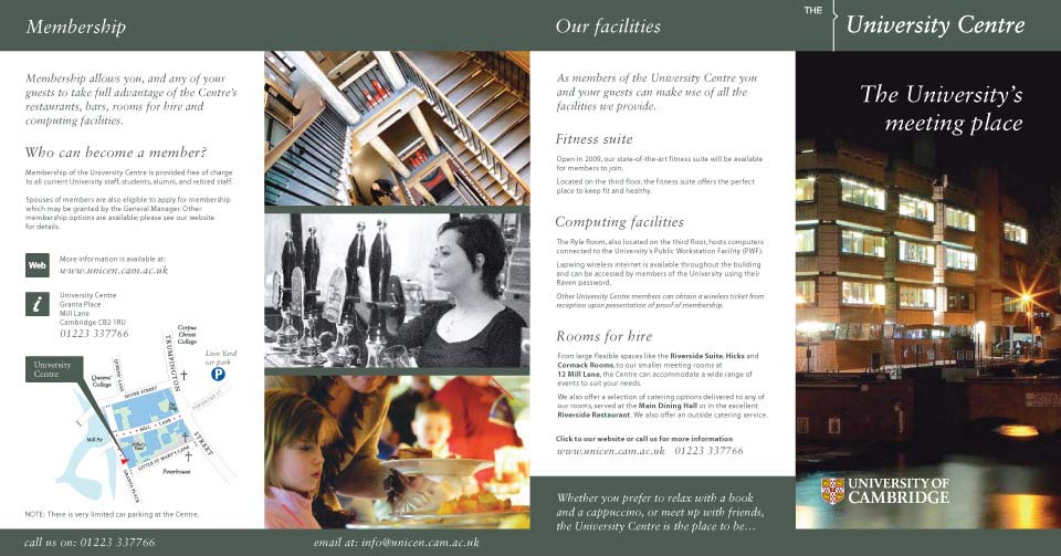 We were appointed by the Facilities Manager at the University of Cambridge to devise a way to redefine how the Centre communicated to, and was used by, University members and visitors.